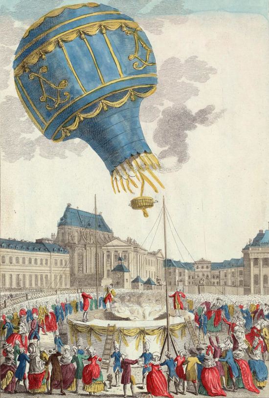 Le premier vol en montgolfière, 1783 Le 19 septembre 1783, devant le roi Louis XVI et la cour, un ballon transportant un mouton, un canard et un coq s’élève dans le ciel de Versailles. Un exploit qui prouve que le vol est possible et captive l’Europe entière.