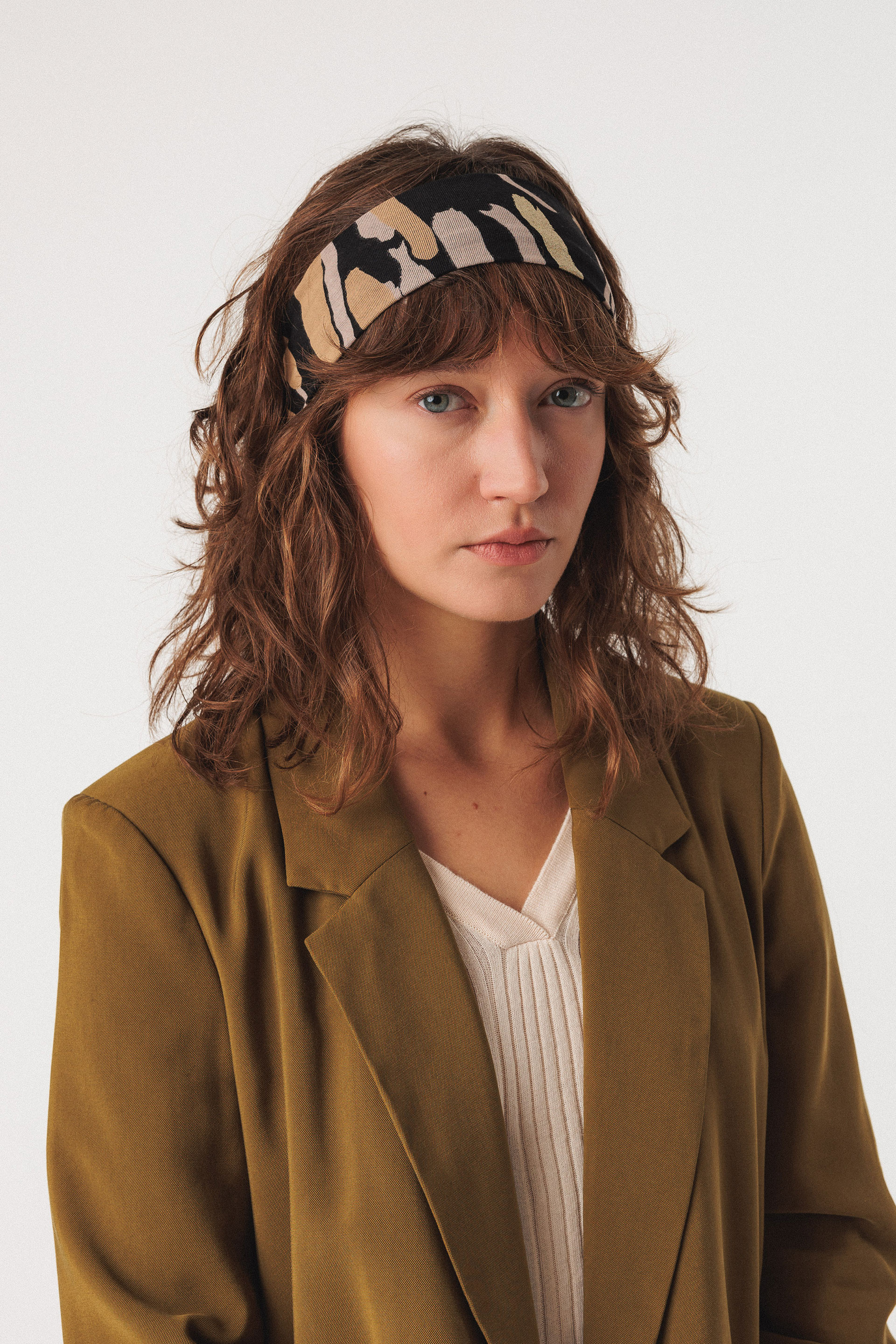 Bandeau à cheveux XINGOLA-GOTS motif STONE noir, beige et doré