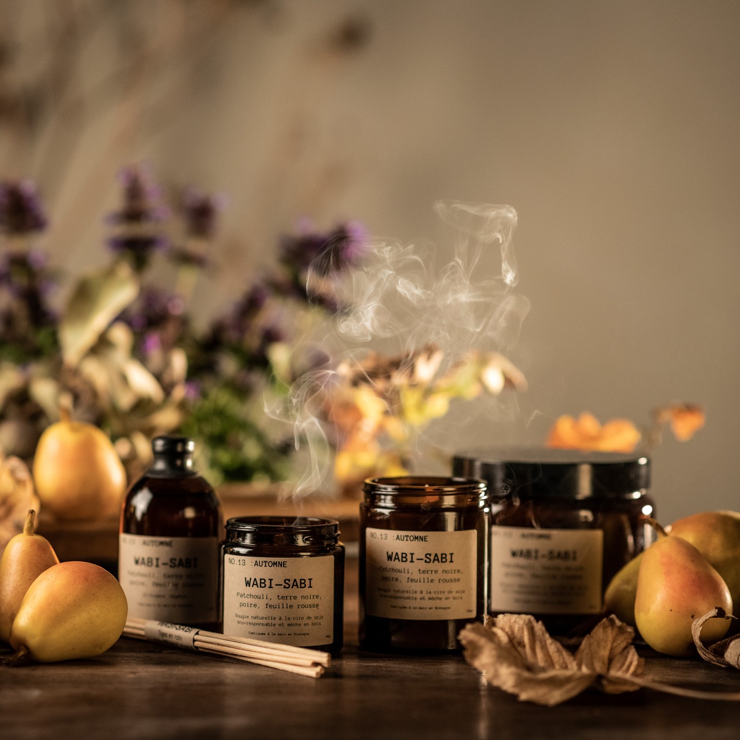 Gamme NO.13, Automne : notes de Patchouli, terre noire, poire et feuille rousse.