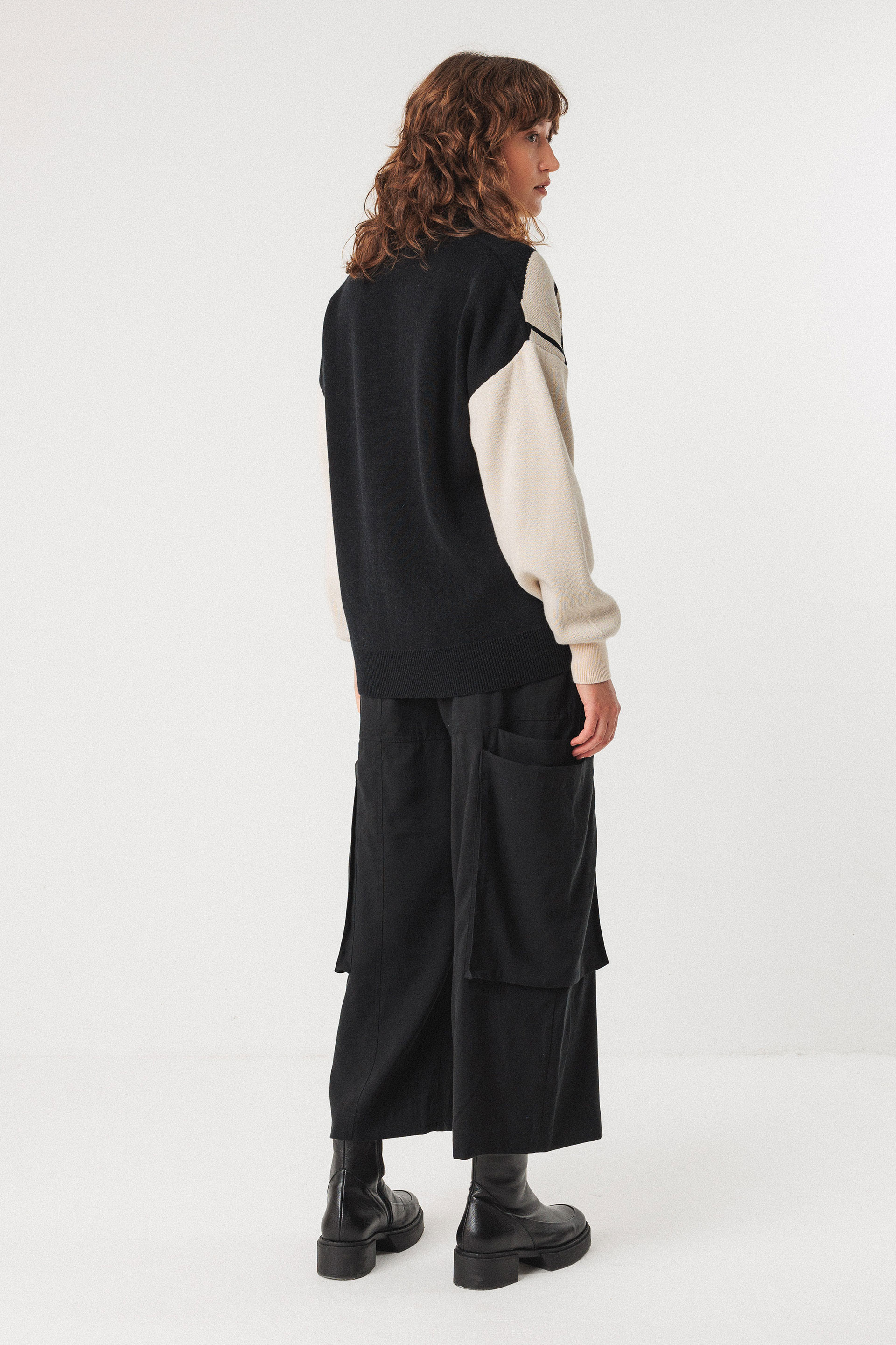 Cardigan en tricot épais de coton biologique certifié GOTS. Coupé aux hanches, il présente un motif jacquard.