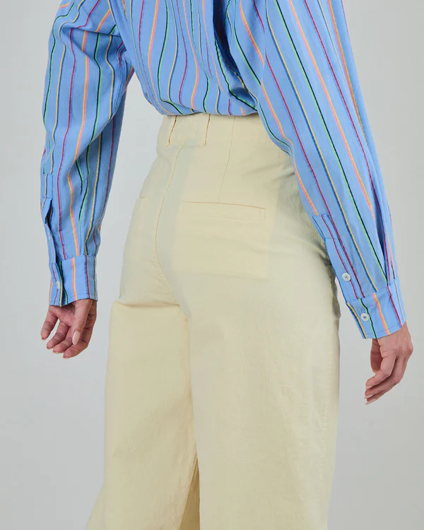 Le pantalon crème à jambes fuselées revisite la coupe moderne d'un basique du quotidien. Conçu pour un confort optimal tout en sublimant la silhouette, il se marie à merveille avec des hauts ajustés, des chemises rentrées et des sandales simples. Une pièce polyvalente idéale pour les beaux jours.