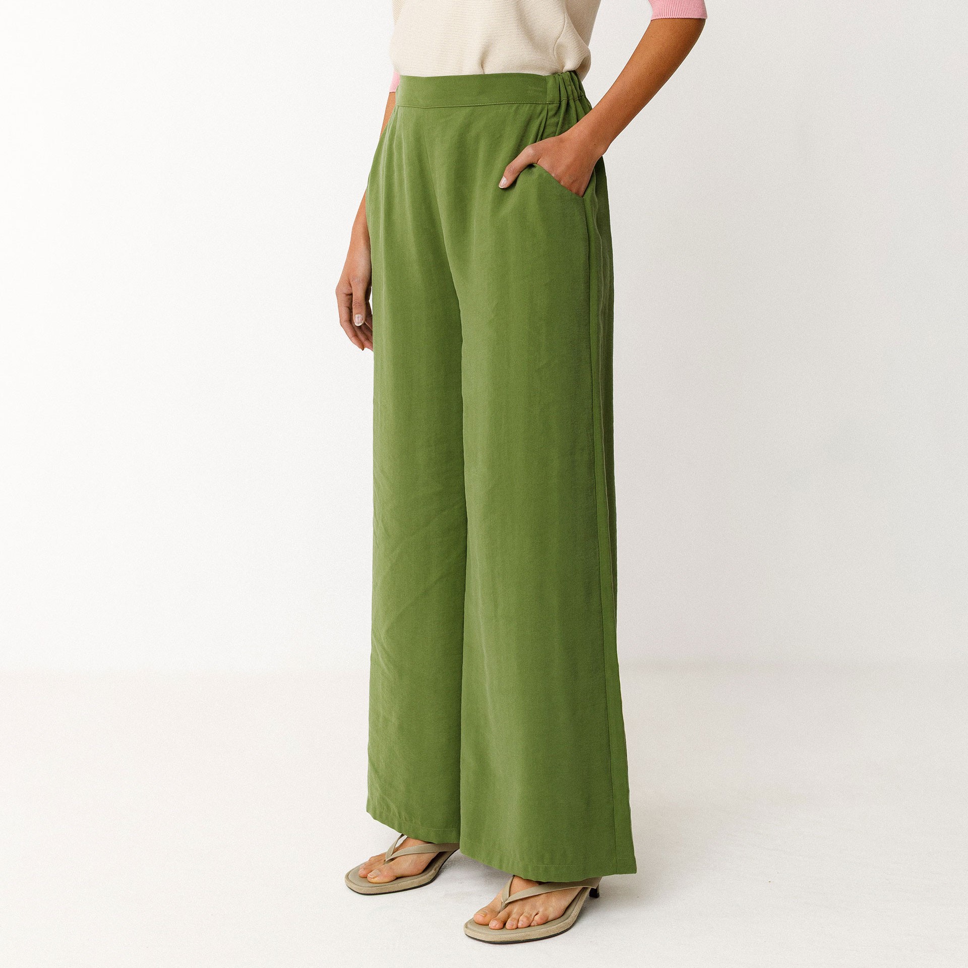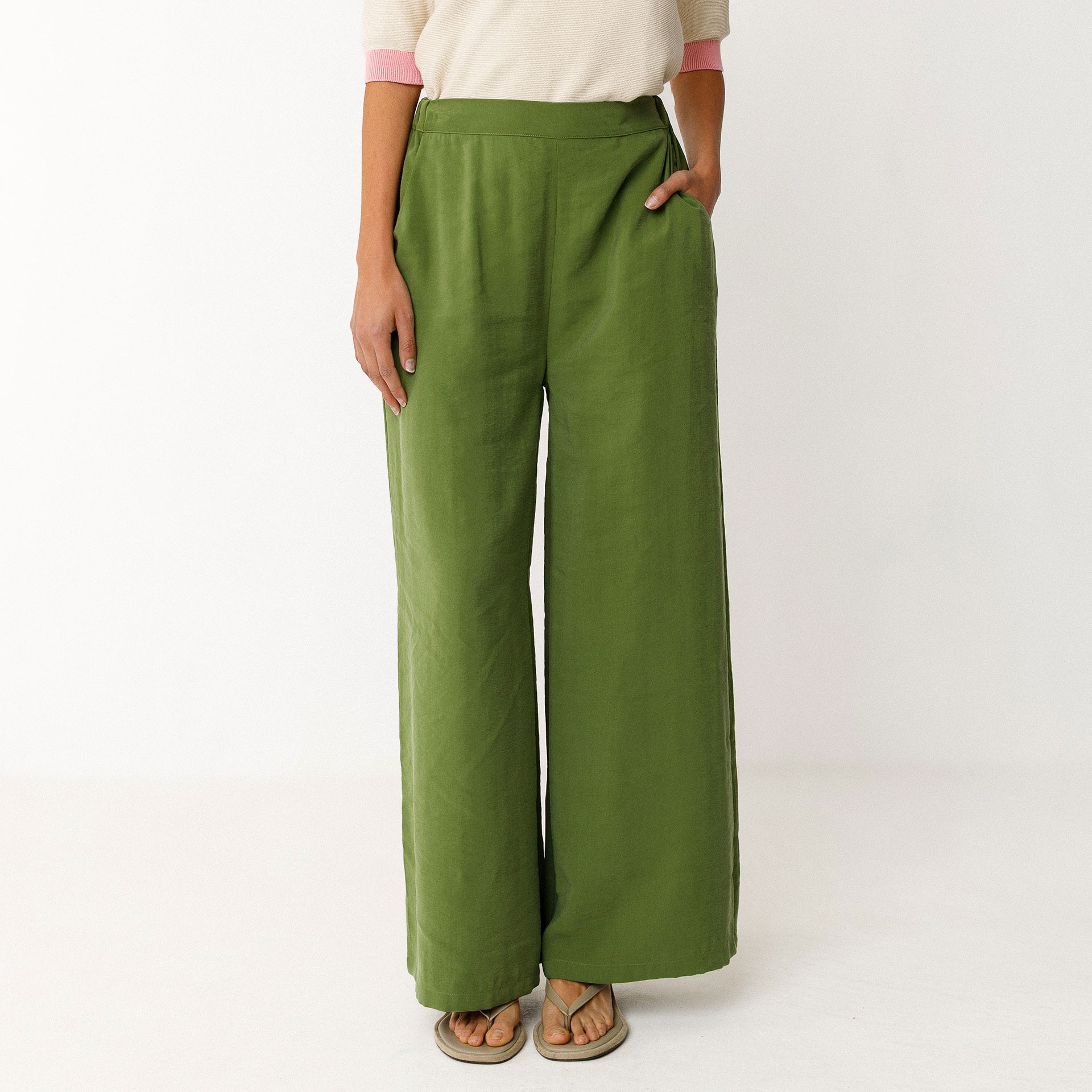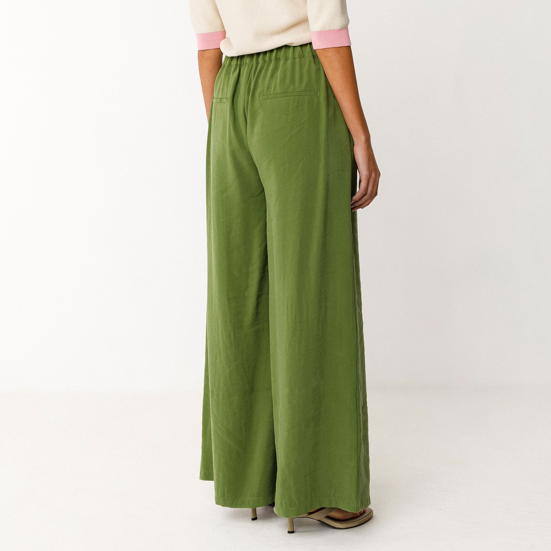 Pantalon palazzo fluide, avec une taille élastiquée au dos et des poches sur les côtés.
