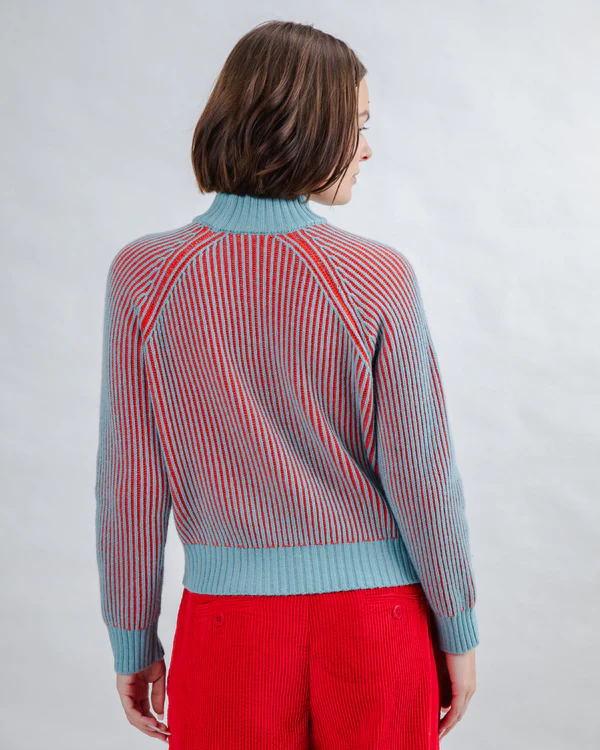 Pull court bicolore Bleu et rouge