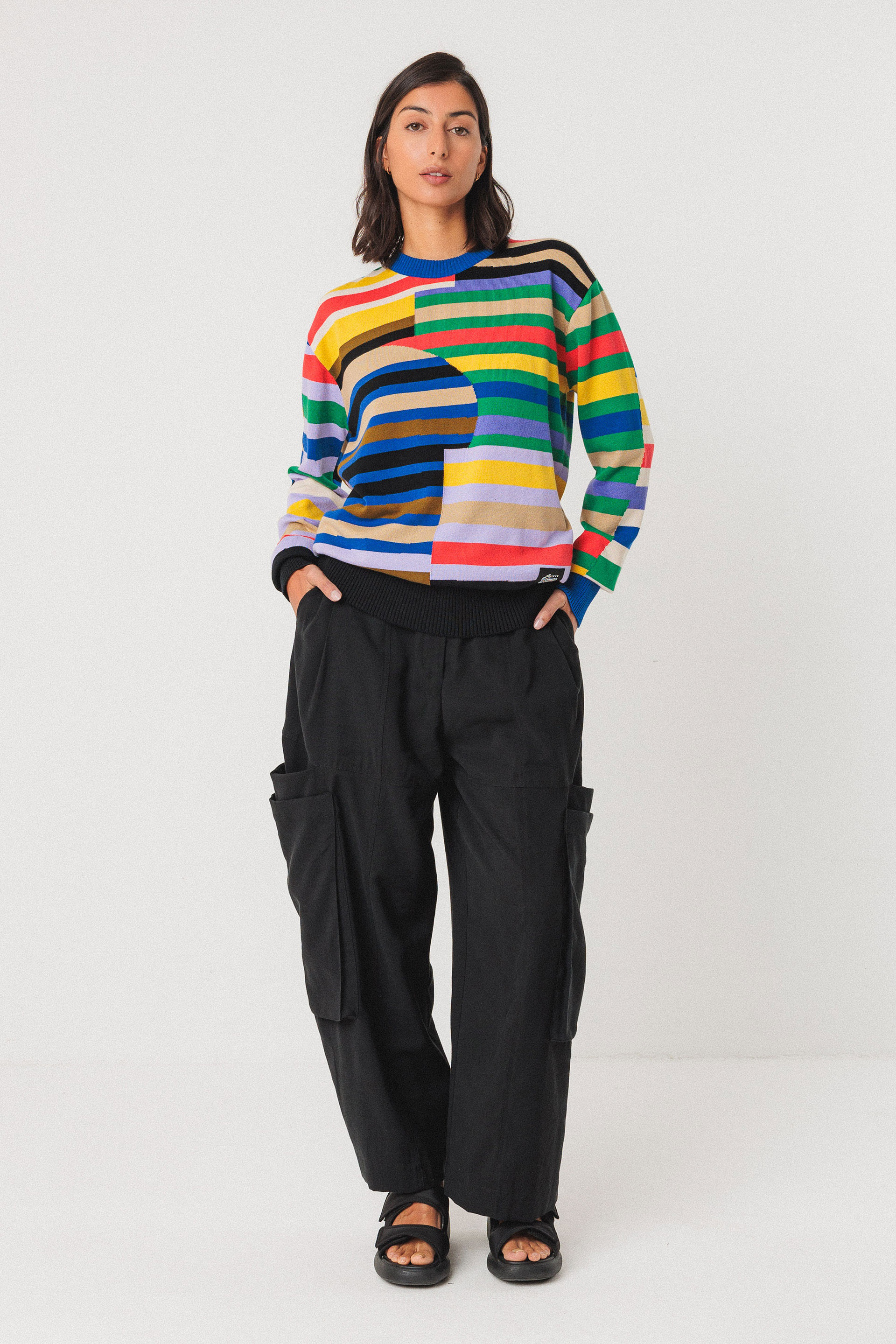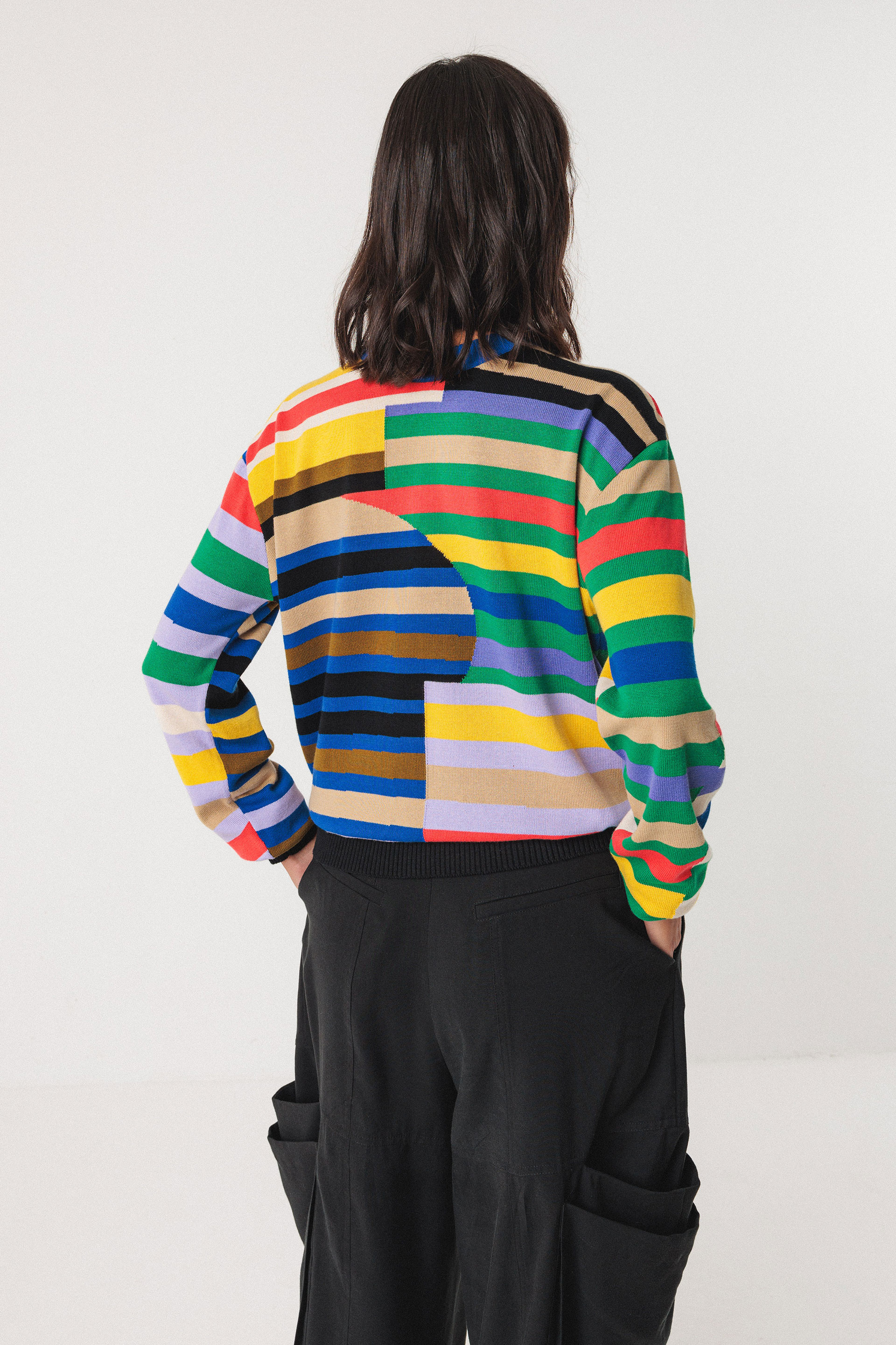Pull en tricot à col rond en manches longues avec des finitions à côtés au col, à la taille et aux poignets. Motif issu d'une collaboration avec l'artiste Grems.