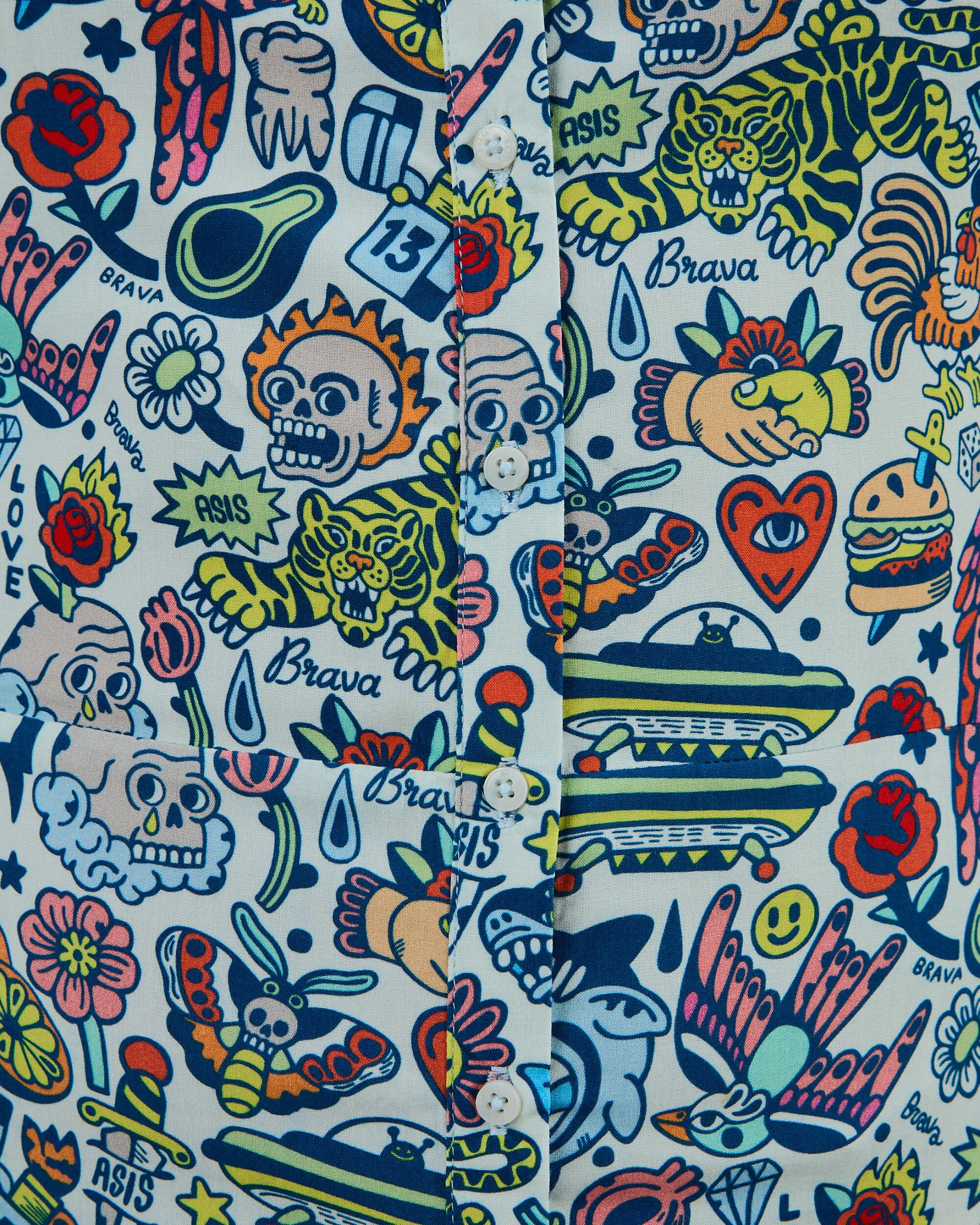 Décontracté, moderne et accessible, tout en restant respectueux, cette robe à bretelles THIS IS ASIS incarne l’esprit casual premium de Brava Fabrics. Son imprimé audacieux et coloré, inspiré des Aloha shirts, apporte une touche vibrante à votre garde-robe tout en célébrant l’artisanat responsable.