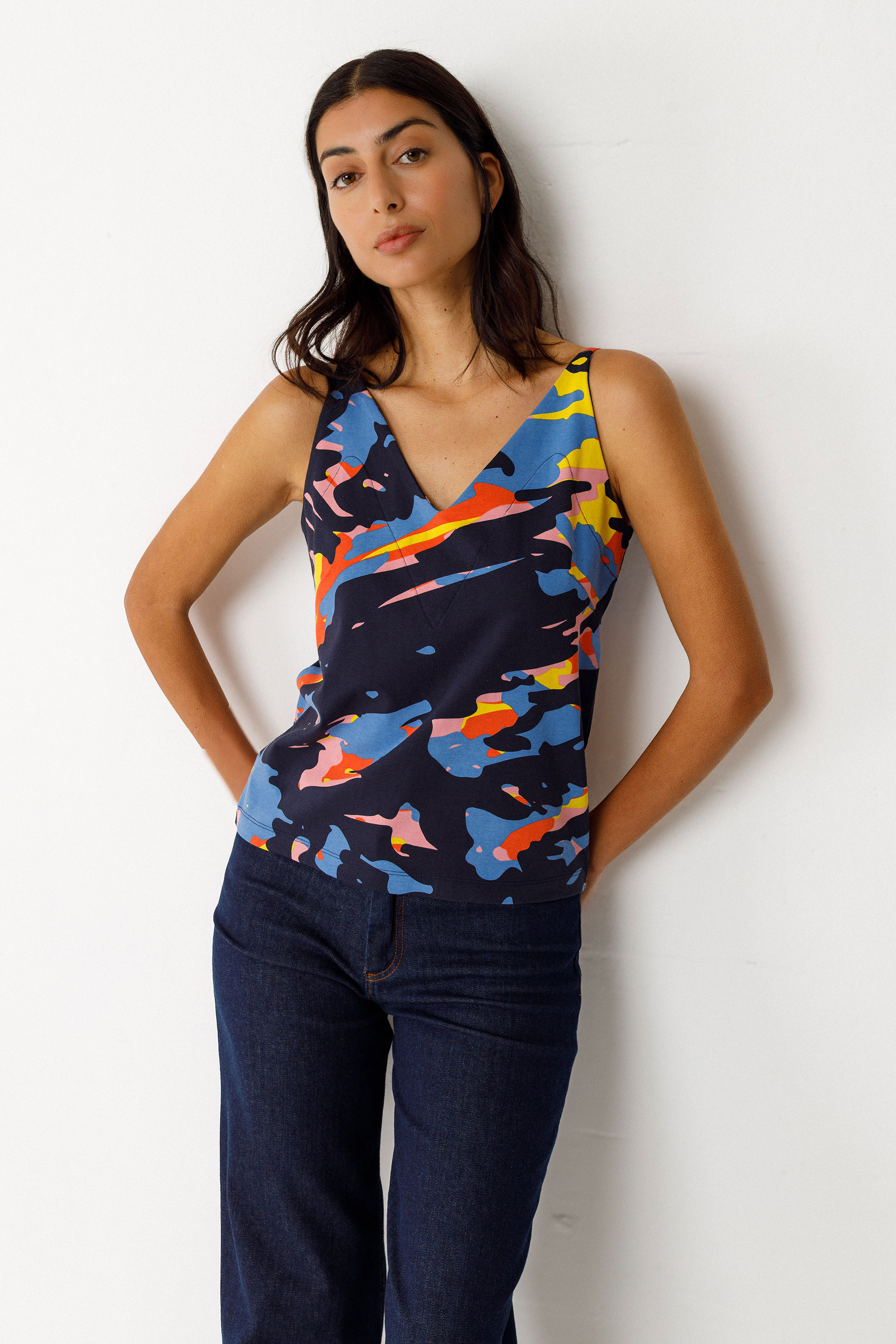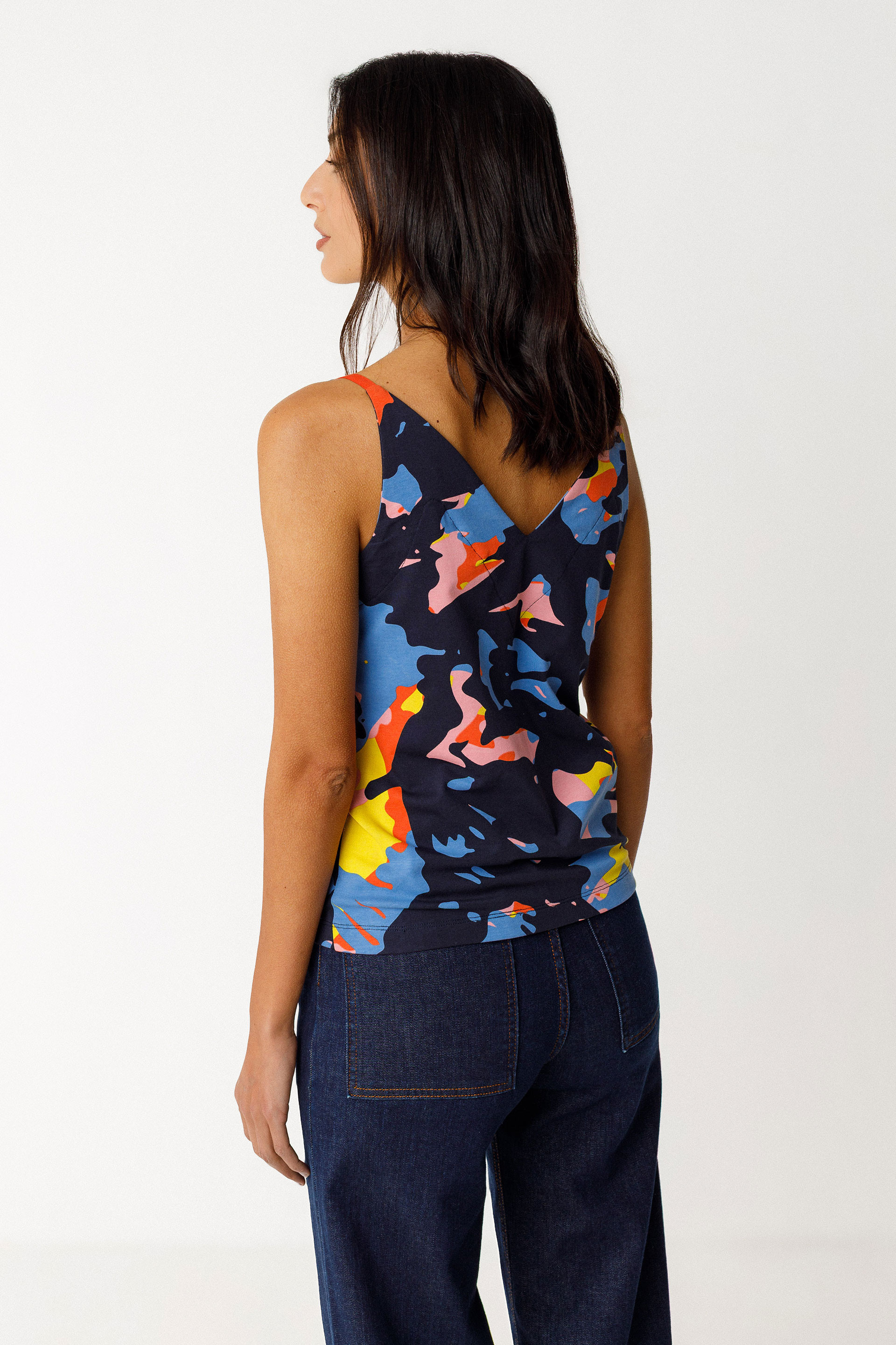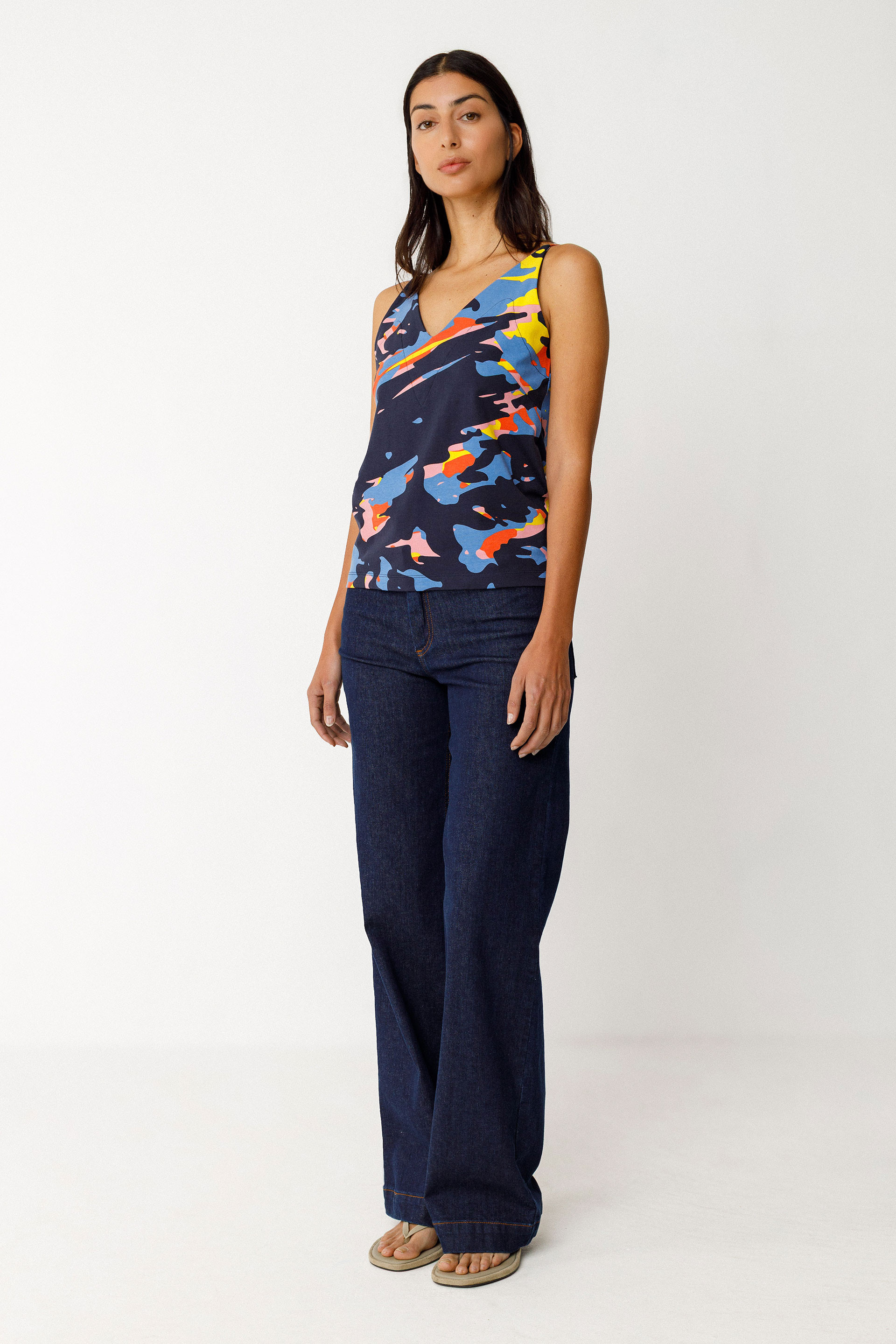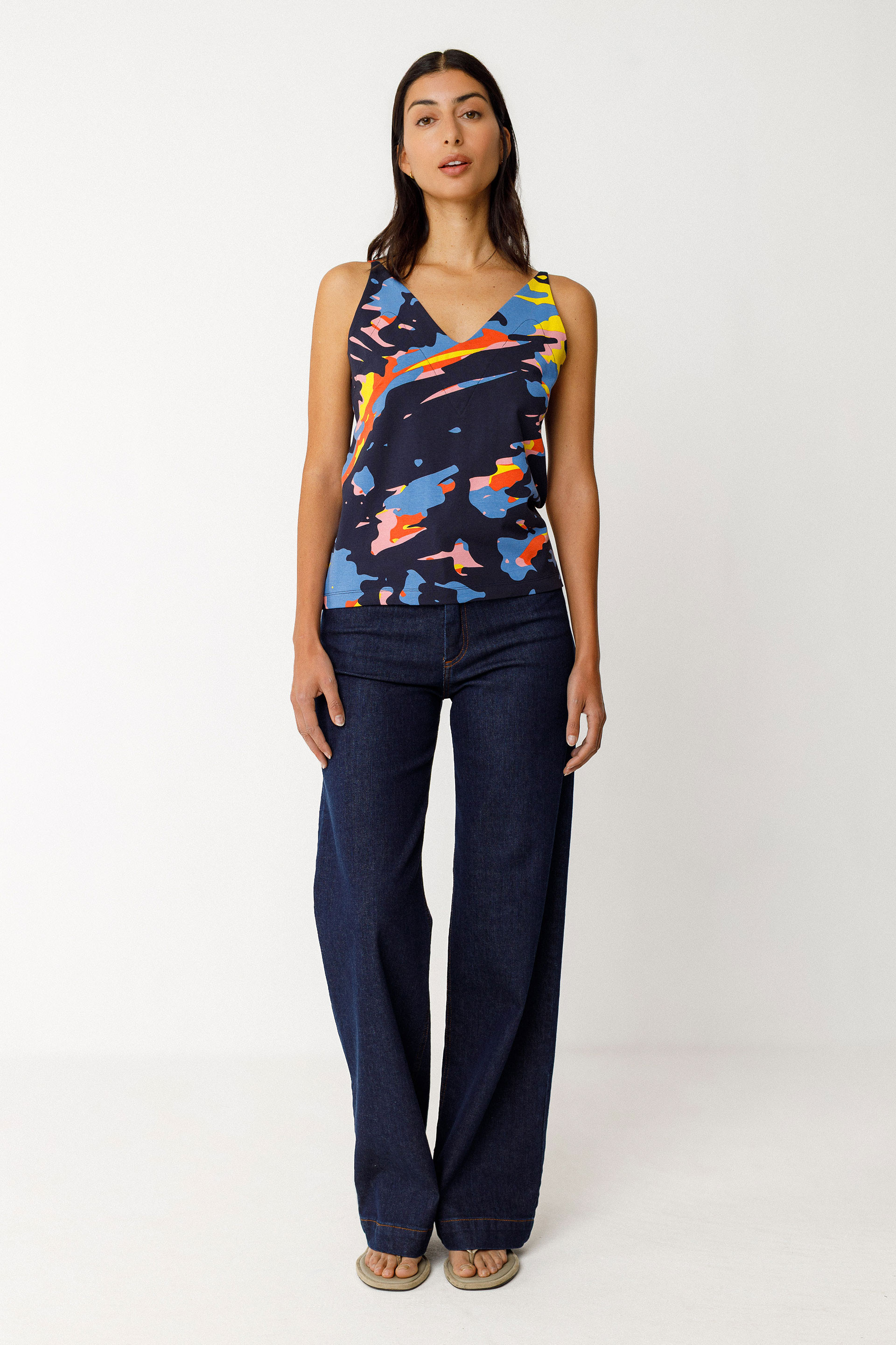 Débardeur à col V et coupe droite, confectionné en coton biologique certifié GOTS.