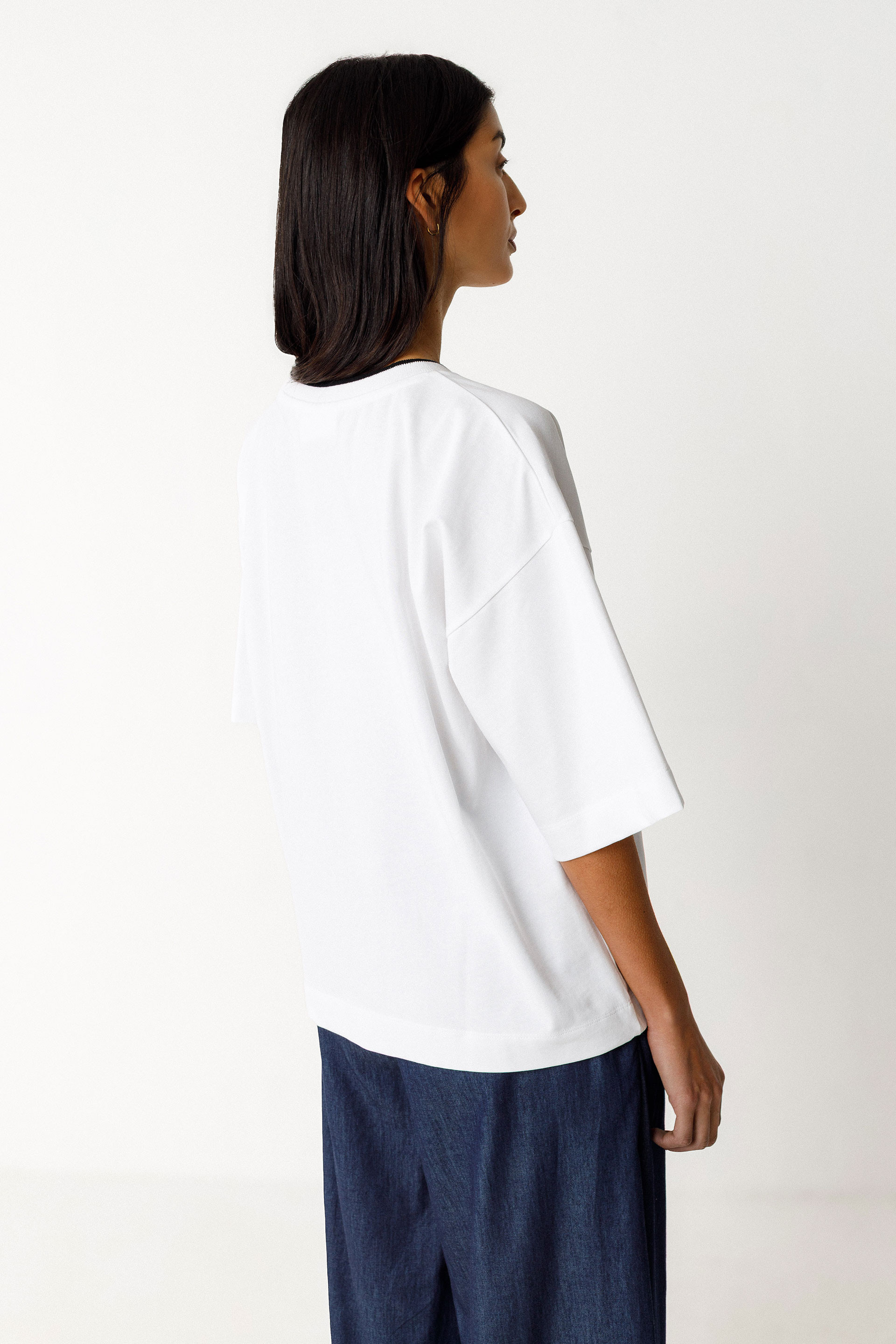 Ample t-shirt à col rond et manches courtes en tricot biologique certifié GOTS. Collaboration avec l’artiste Grems.