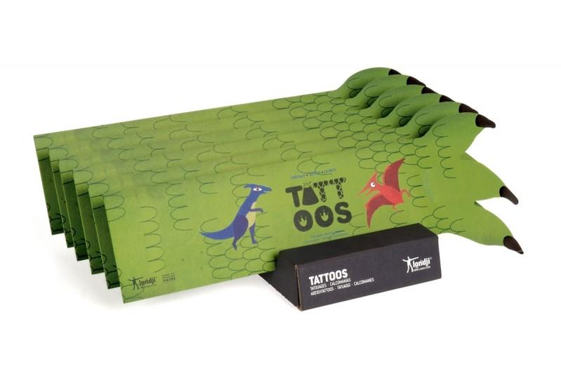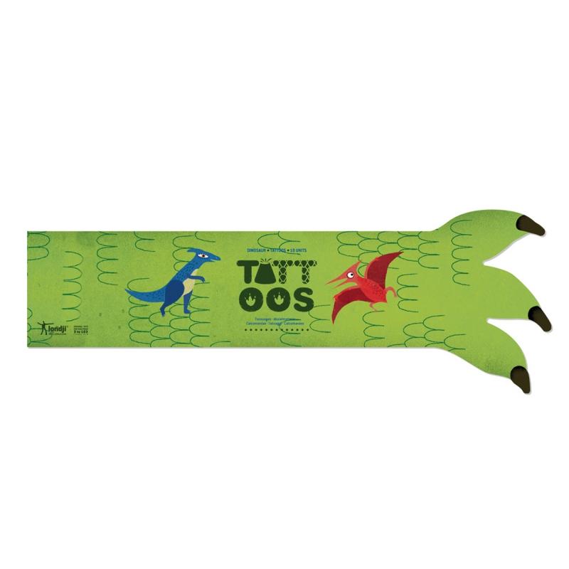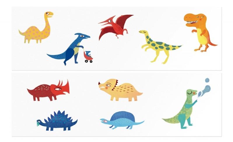 Diplodocus et tyrannosaures, c’est un grand plaisir de vous présenter les tatouages de dinosaures. Ils sont sans danger, non toxiques, amusants et fabriqués en Europe ! 10 tatouages éphémères Testés dermatologiquement Illustration de Mariana Ruiz Johnson Âge de 3 à 103 ans Mesures 34 x 7 -12 cm Conseils d'utilisation : - Découpez le tatouage souhaité, - Retirez le film protecteur, - Placez le tatouage sur la partie du corps choisie, - Humidifiez le papier de manière à recouvrir l'ensemble du tatouage, - Retirez le papier délicatement et admirez :-)