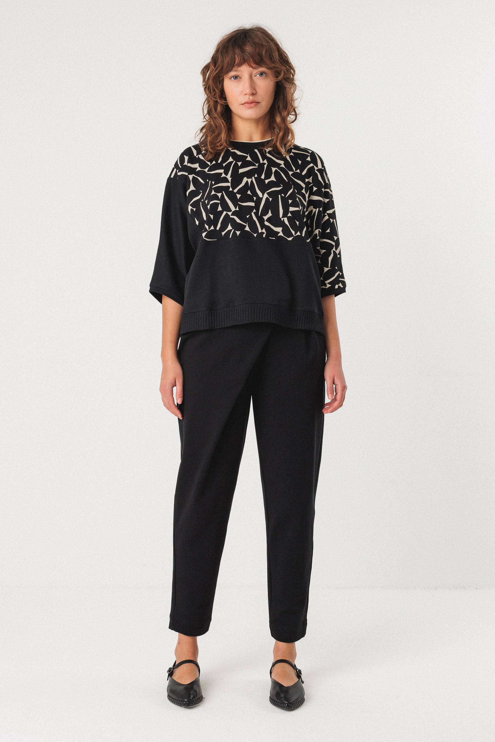 Ample t-shirt à col rond et manches chauve-souris affichant un jeu d’empiècements contrastants.