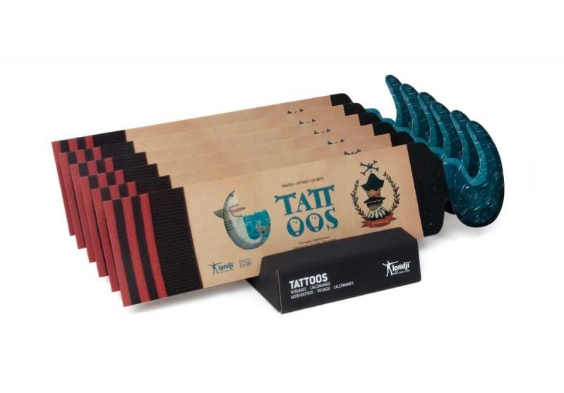 Marins d’eau douce, c’est un grand plaisir de vous présenter les fantastiques Tatouages Pirates ! Ils sont sans danger, non toxiques, amusants et fabriqués en Europe ! 10 tatouages éphémères Testés dermatologiquement Illustration de Julio A. Blasco, Sr. López Âge de 3 à 103 ans Mesures 34 x 7 -12 cm Conseils d'utilisation : - Découpez le tatouage souhaité, - Retirez le film protecteur, - Placez le tatouage sur la partie du corps choisie, - Humidifiez le papier de manière à recouvrir l'ensemble du tatouage, - Retirez le papier délicatement et admirez :-)